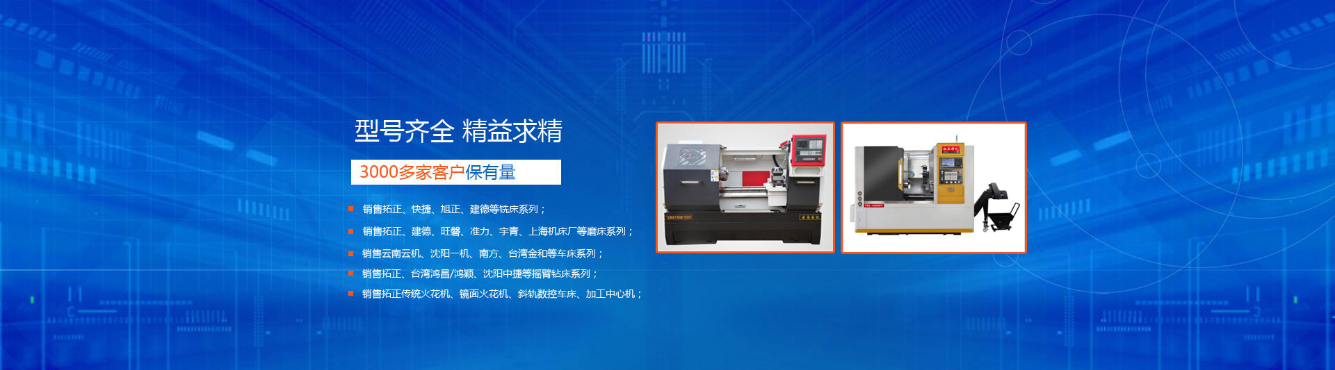 銷售拓正、快捷、旭正、建德等銑床系列;銷售拓正、建德、旺磐、準(zhǔn)力、宇青、上海機床等磨床;銷售云南云機、沈陽一機、南方、臺灣金和等車床系列銷售拓正、臺灣鴻昌/鴻穎、沈陽中捷等搖臂鉆床系列;銷售數(shù)控雕銑機、火花機、加工中心機、中走絲線切割等。